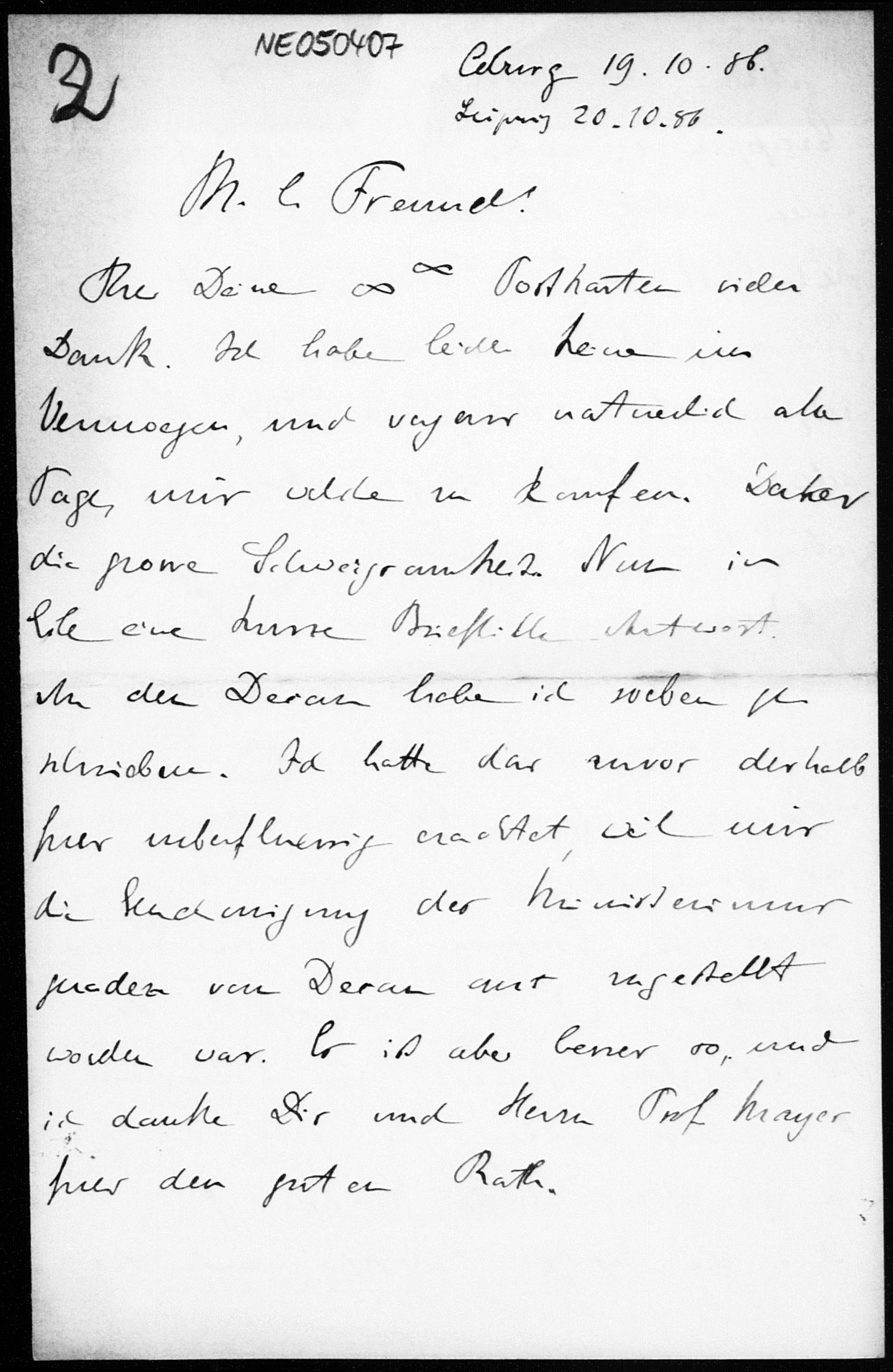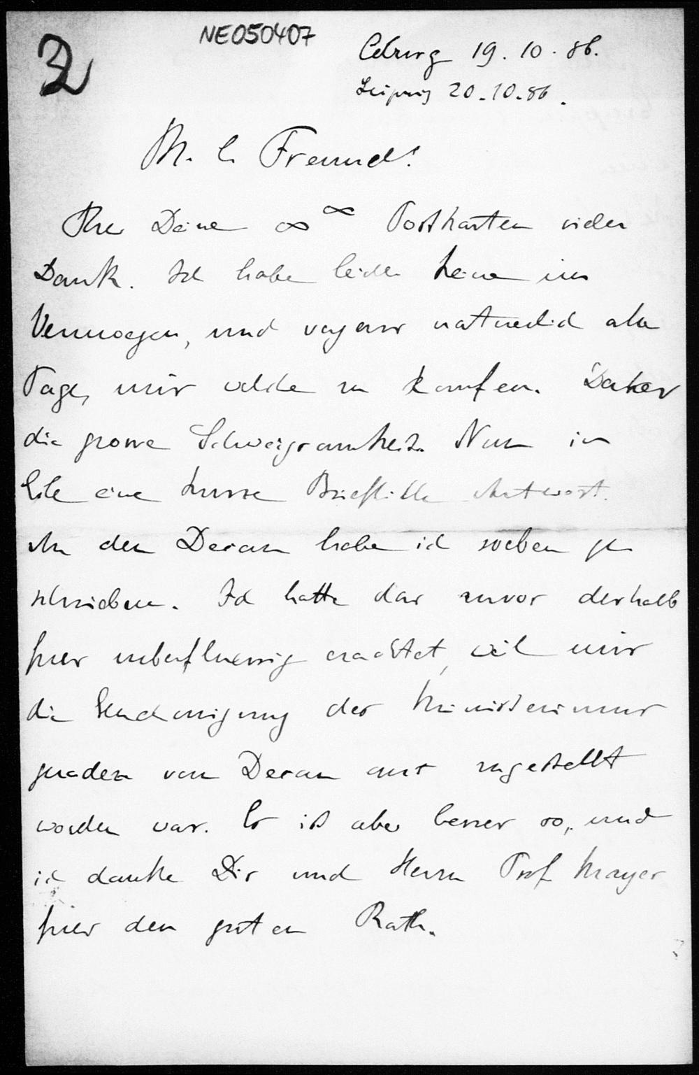 Brief von Eduard Study an Friedrich Engel vom 19.10.1886
