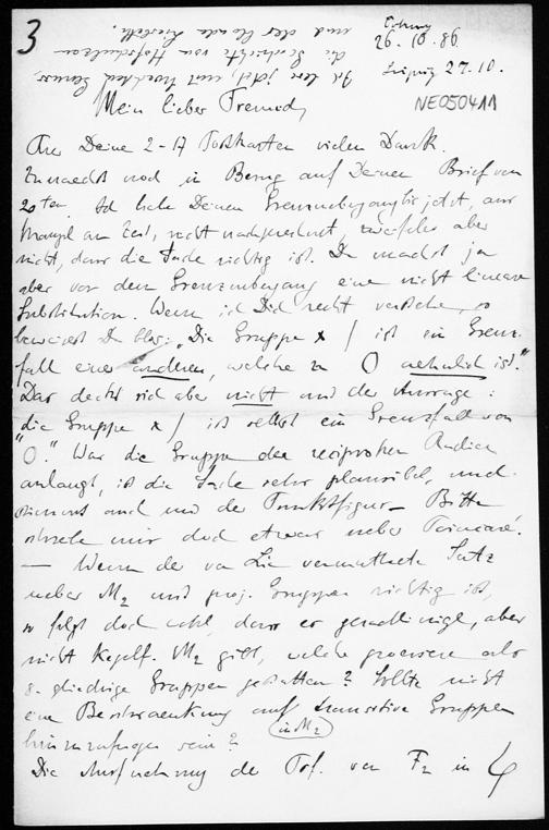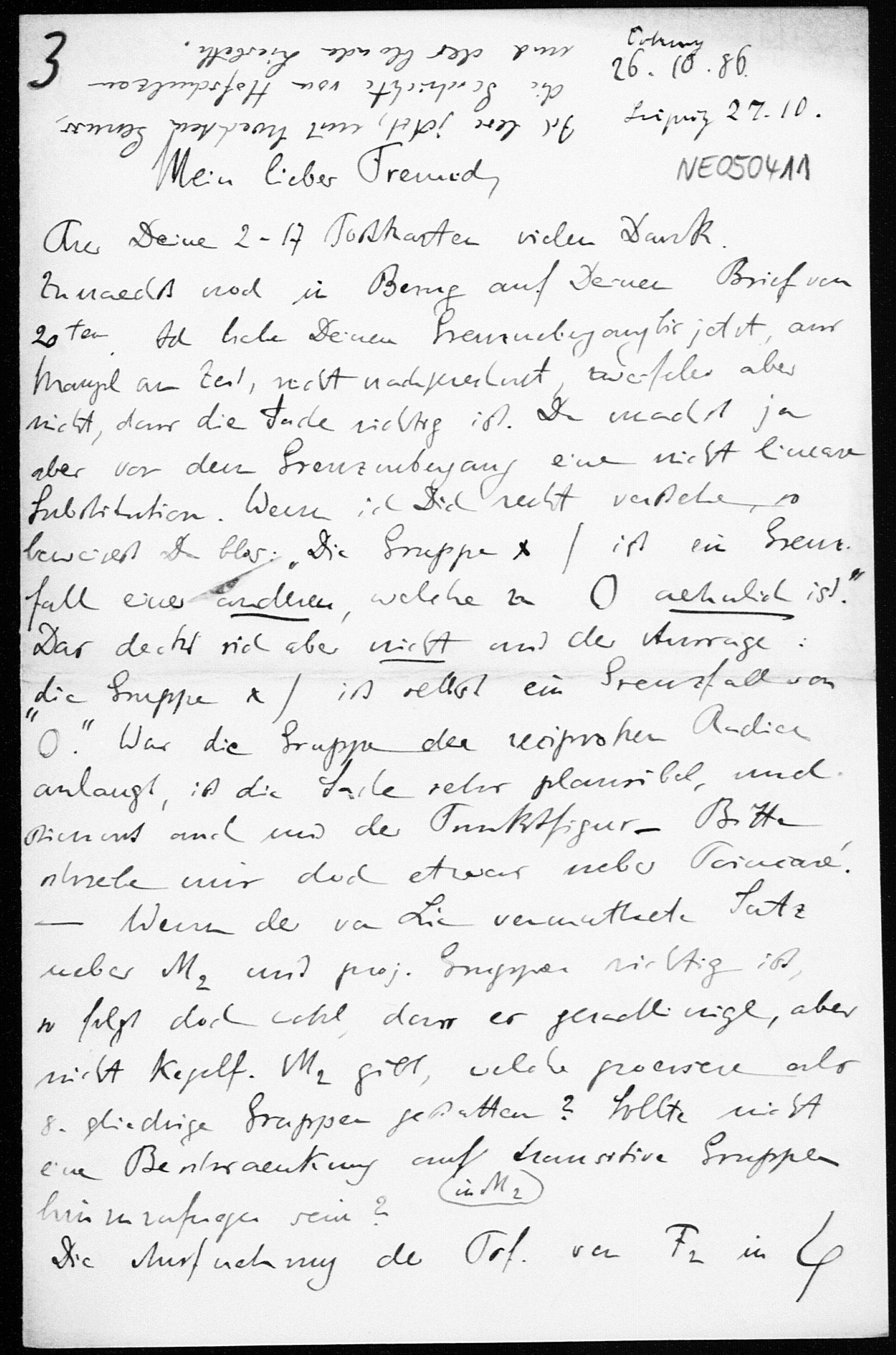 Brief von Eduard Study an Friedrich Engel vom 26.10.1886