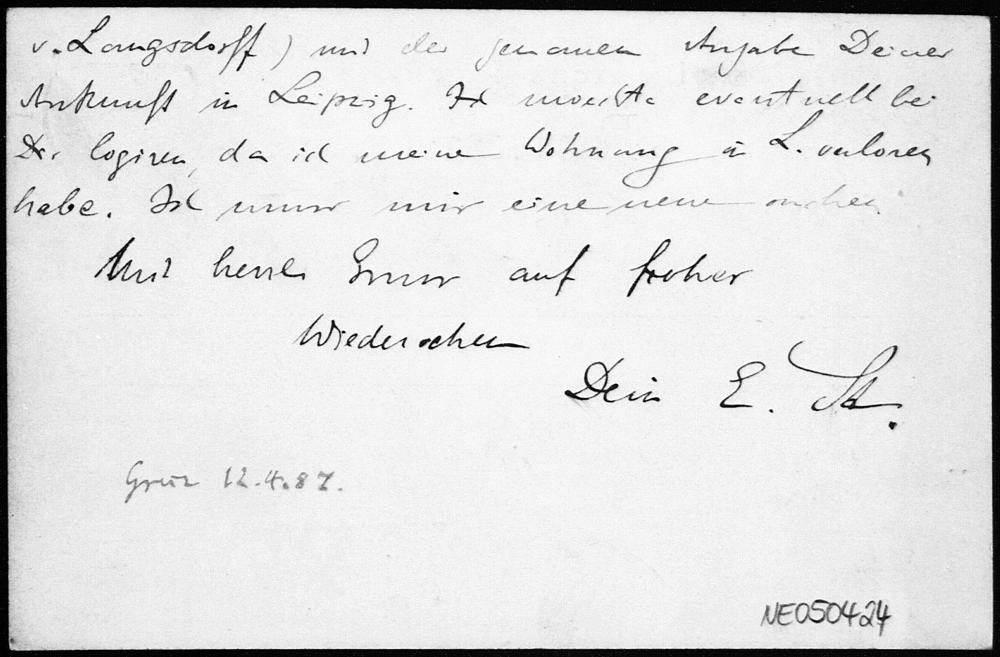 Postkarte von Eduard Study an Friedrich Engel vom 11.4.1887