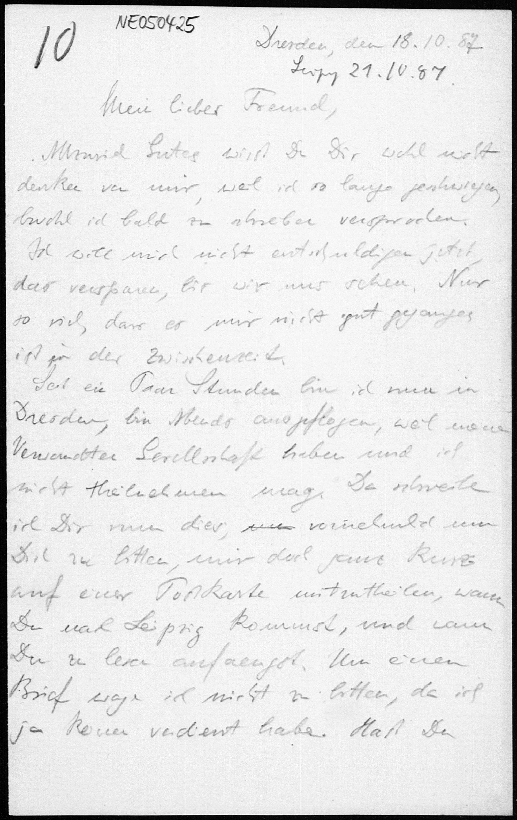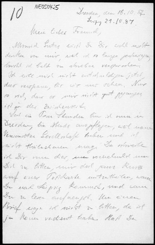 Brief von Eduard Study an Friedrich Engel vom 18.10.1887