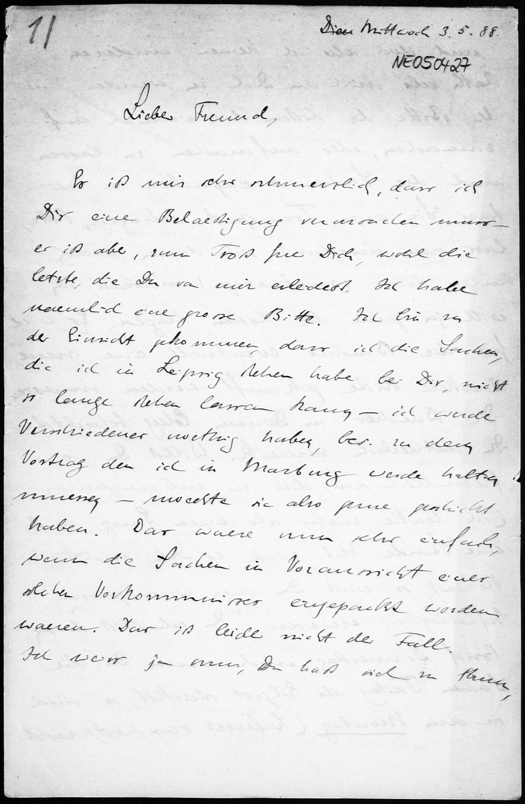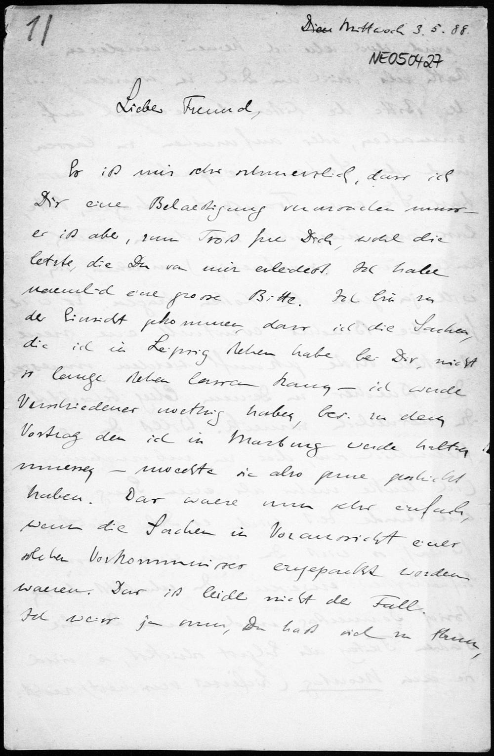 Brief von Eduard Study an Friedrich Engel vom 3.5.1888