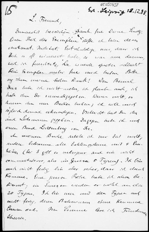 Brief von Eduard Study an Friedrich Engel vom 17(?).12.1888