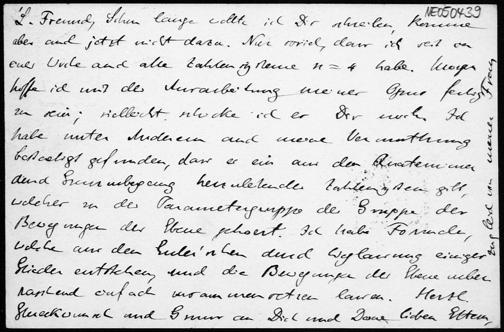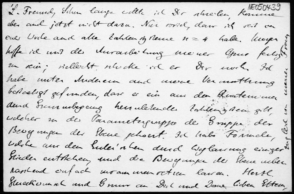 Postkarte von Eduard Study an Friedrich Engel vom 31.12.1888