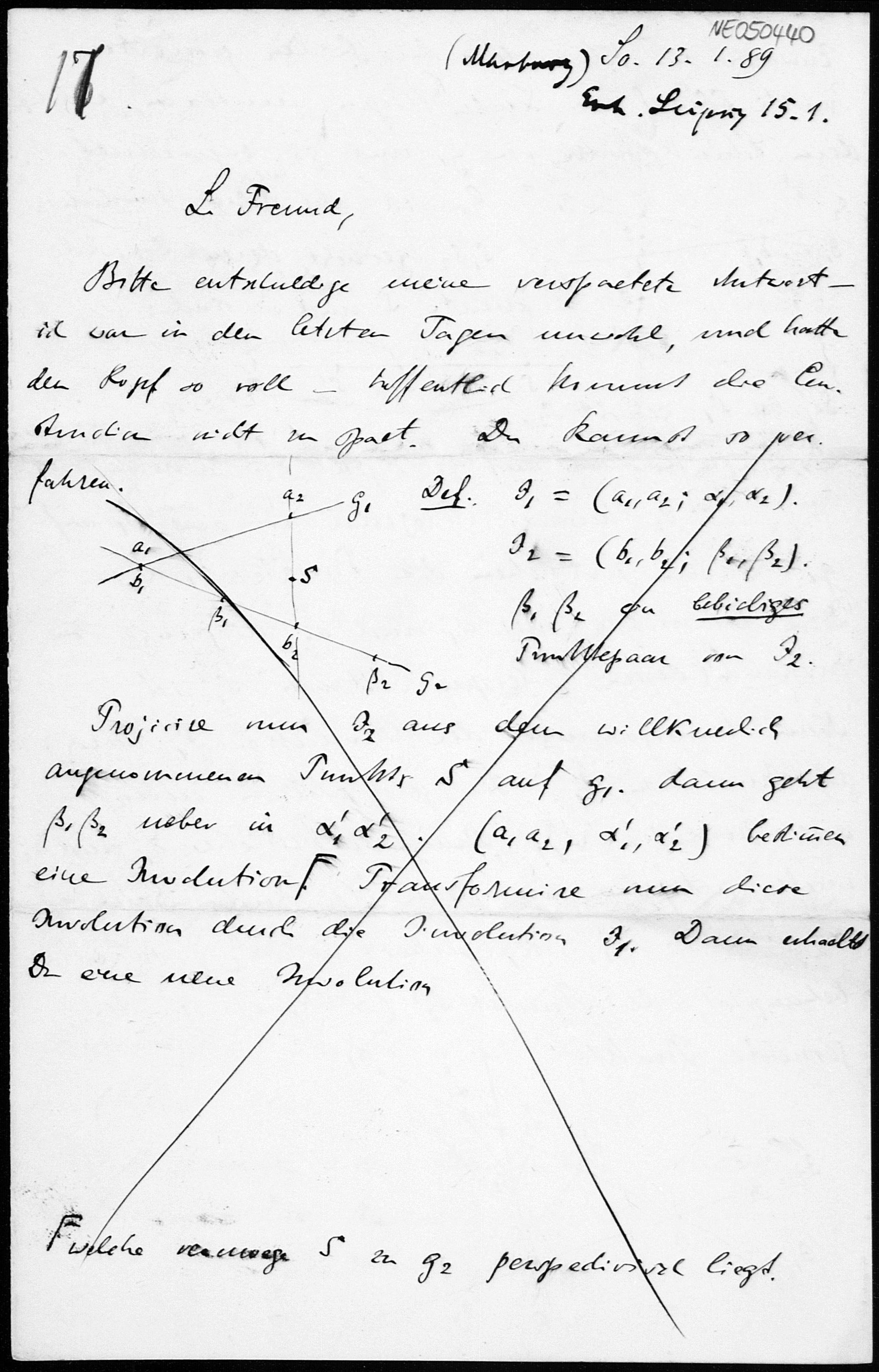 Brief von Eduard Study an Friedrich Engel vom 13.1.1889