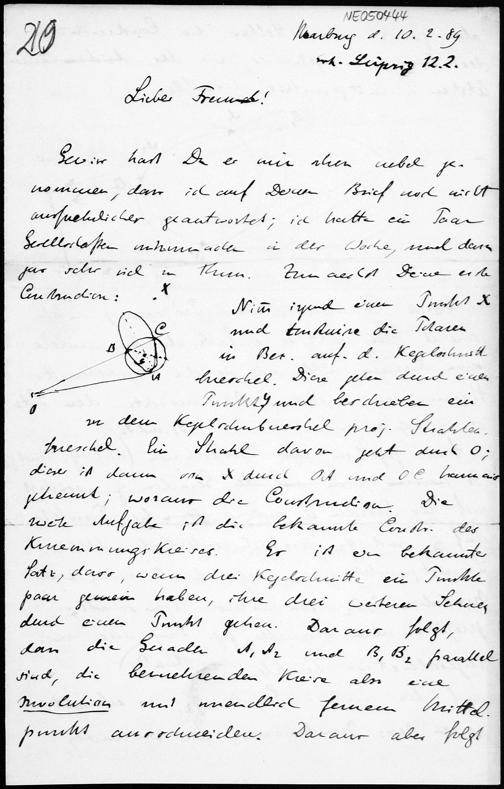 Brief von Eduard Study an Friedrich Engel vom 10.2.1889