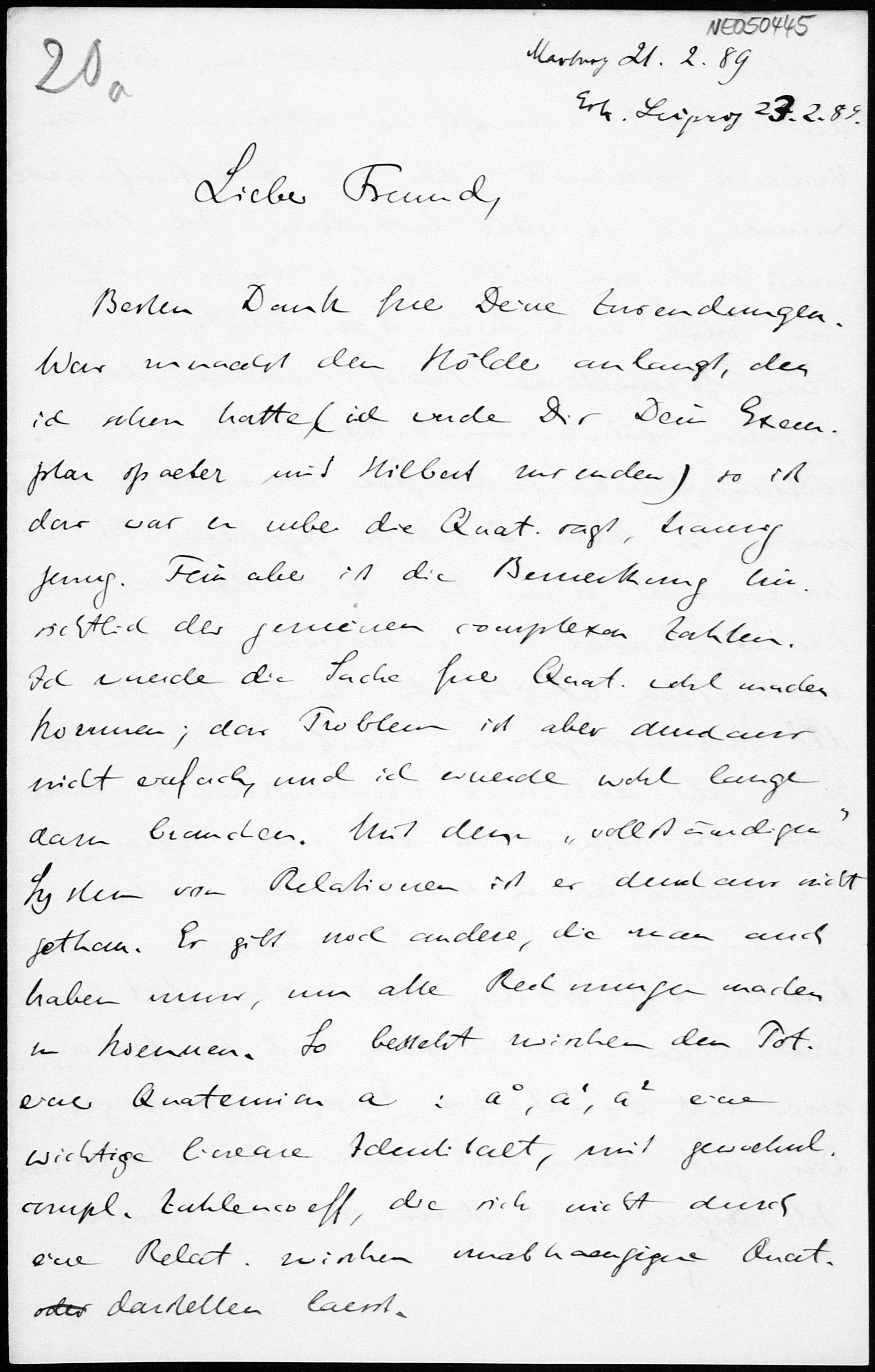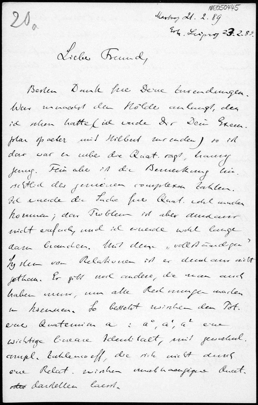 Brief von Eduard Study an Friedrich Engel vom 21.2.1889