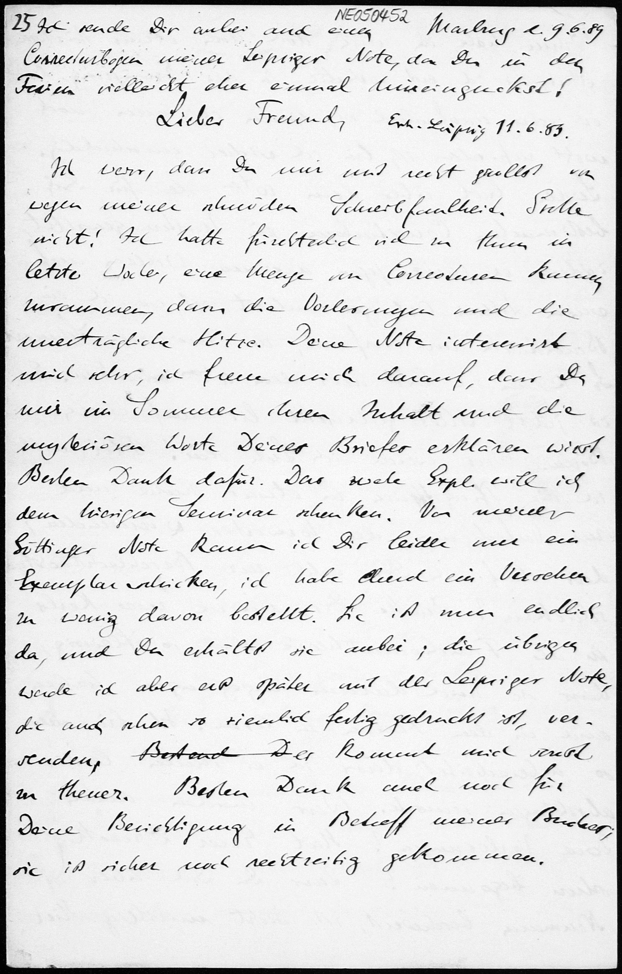 Brief von Eduard Study an Friedrich Engel vom 9.6.1889