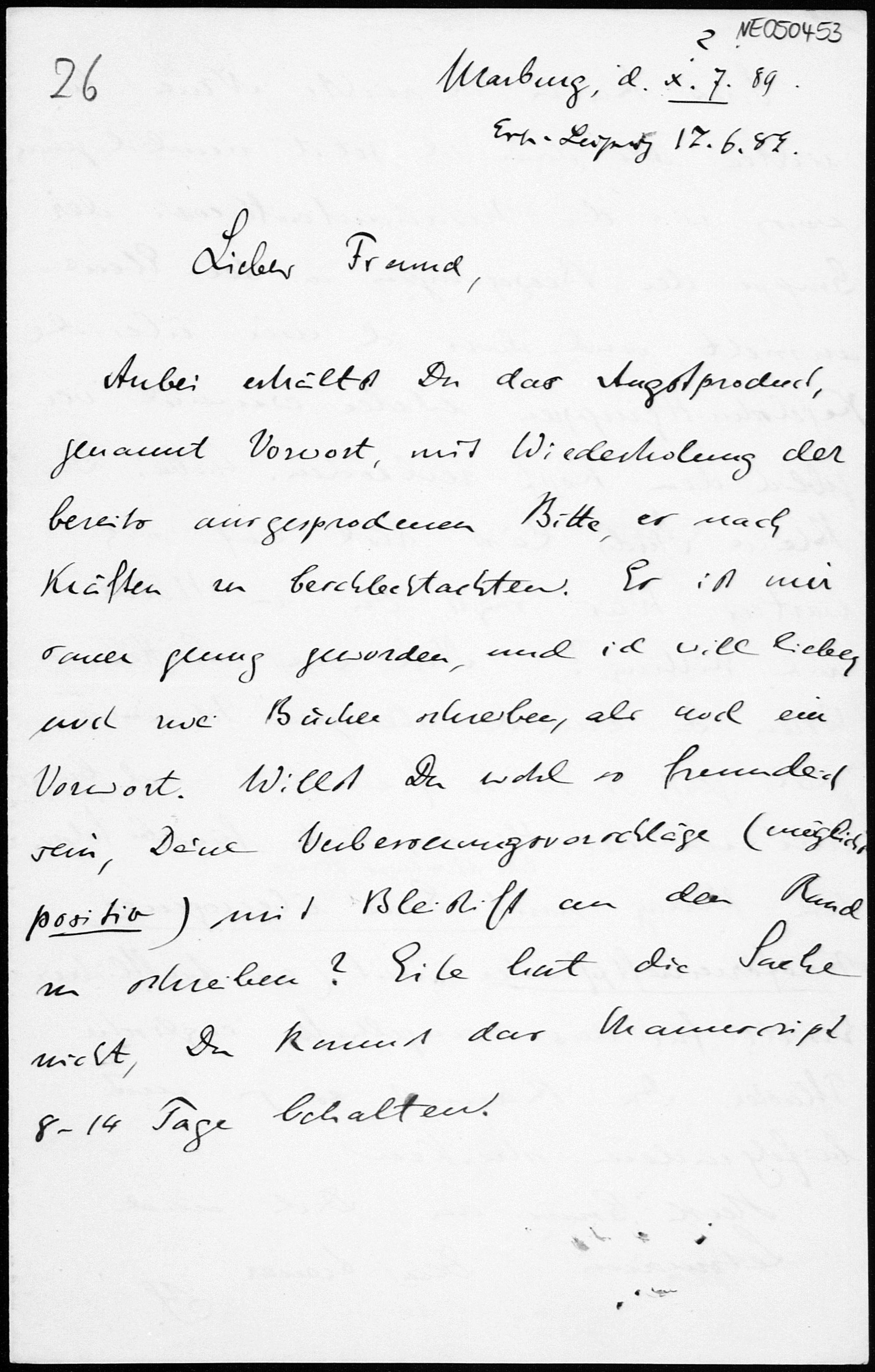 Brief von Eduard Study an Friedrich Engel vom Juni 1889