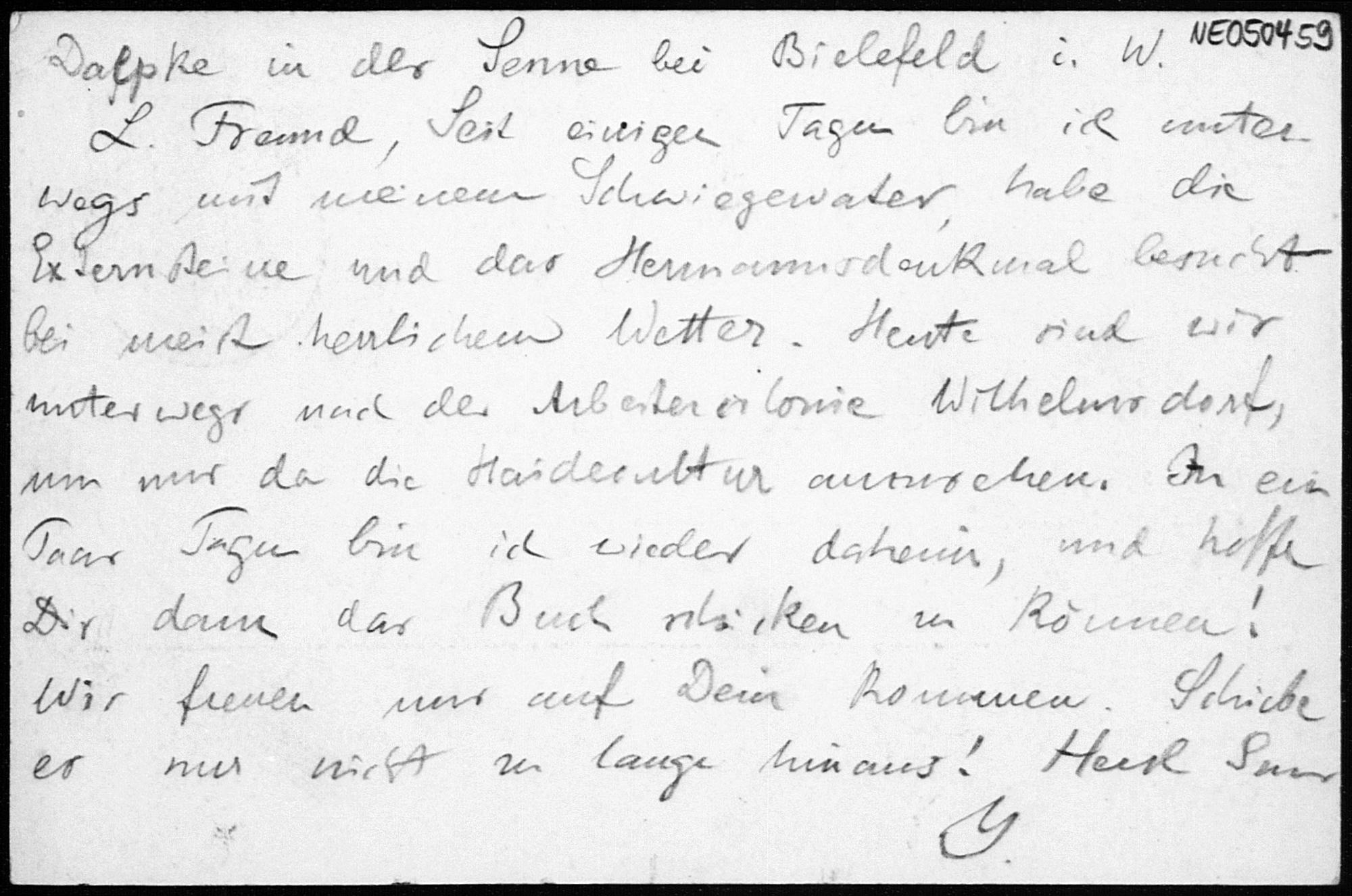 Postkarte von Eduard Study an Friedrich Engel vom 6.8.1889