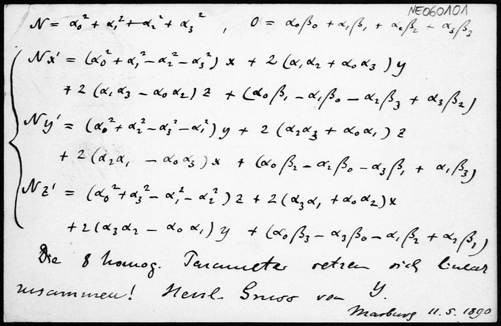 Postkarte von Eduard Study an Friedrich Engel vom 11.5.1890