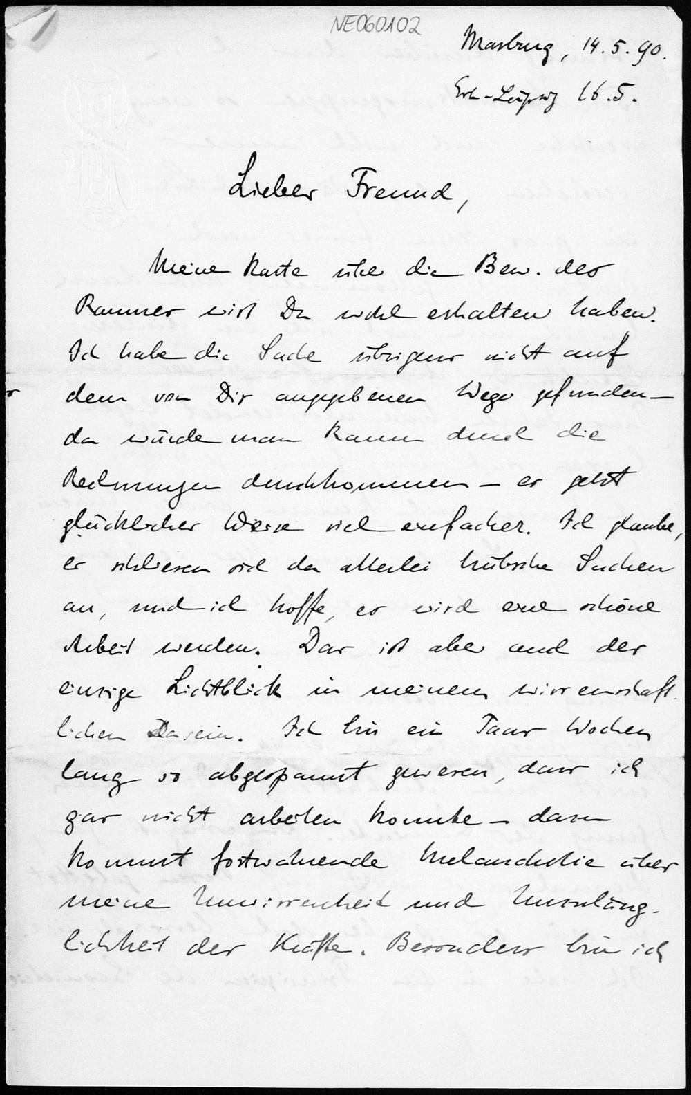 Brief von Eduard Study an Friedrich Engel vom 14.5.1890
