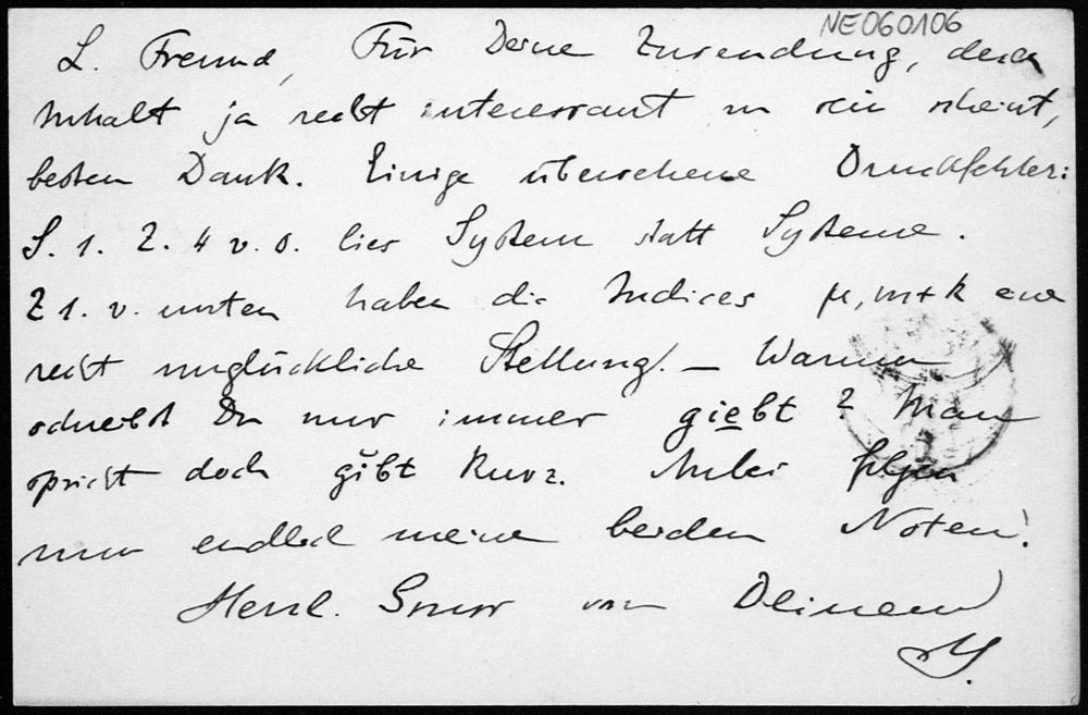 Postkarte von Eduard Study an Friedrich Engel vom 10.7.1890