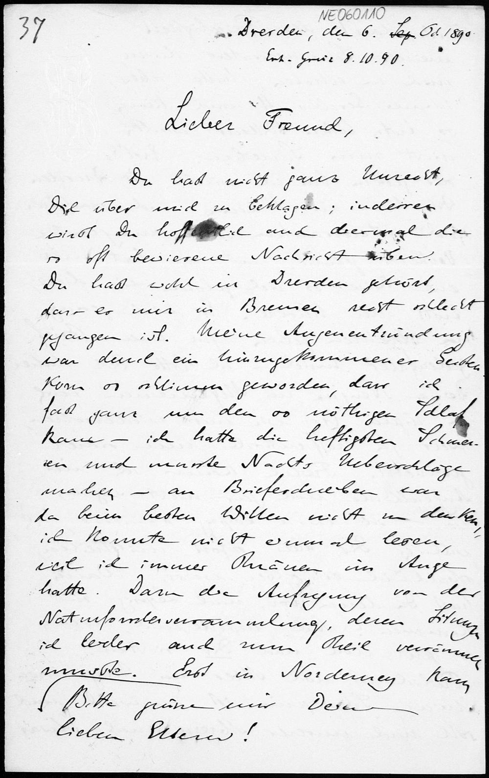 Brief von Eduard Study an Friedrich Engel vom 6.10.1890