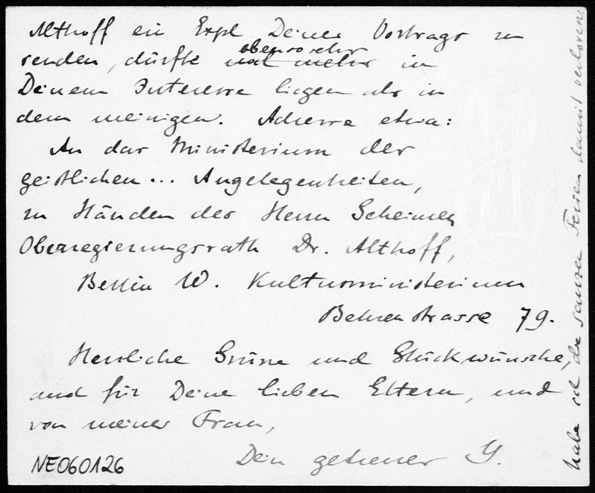 Briefkarte von Eduard Study an Friedrich Engel von Ende Dezember 1890 / Anfang Januar 1891