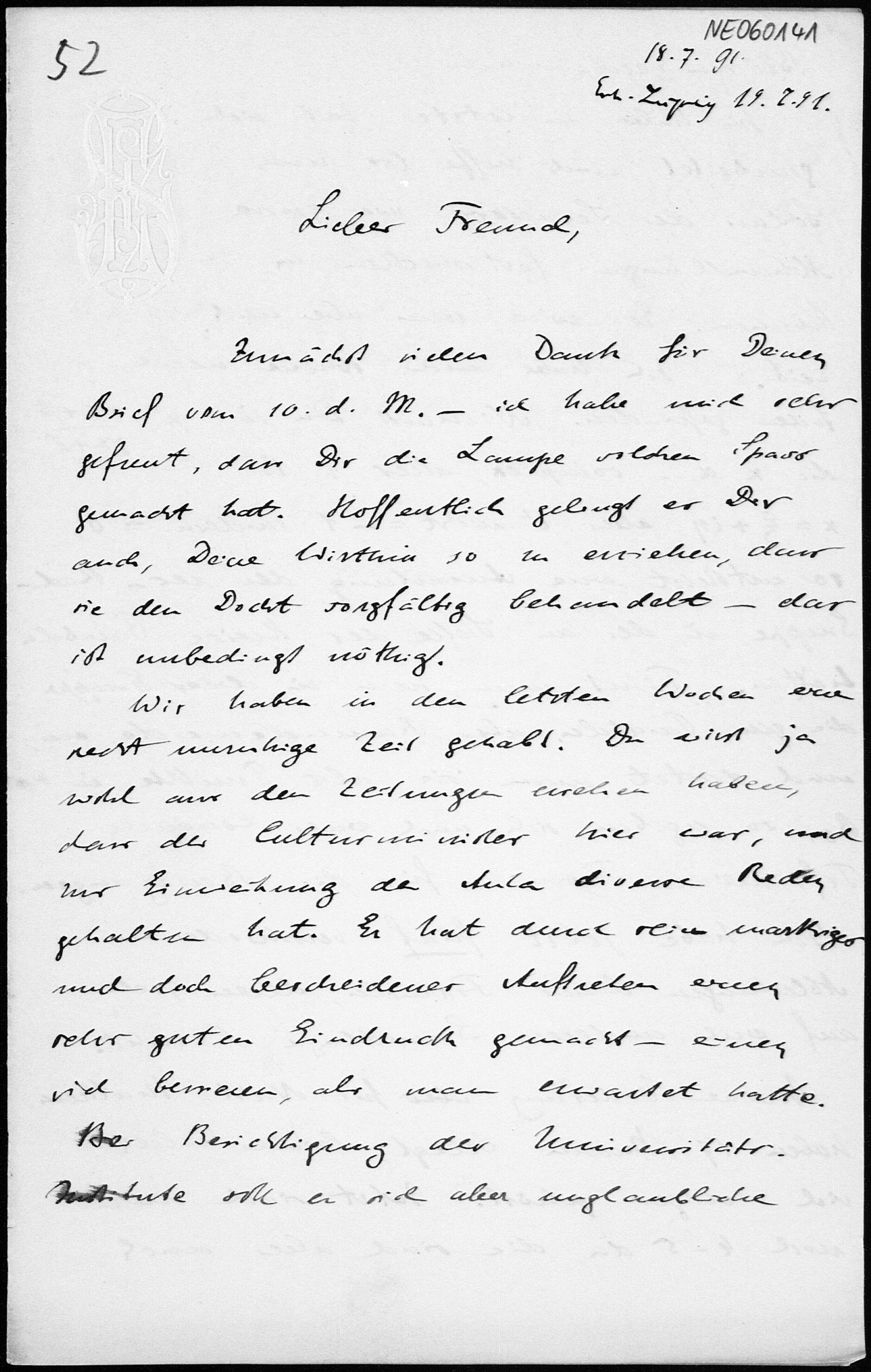 Brief von Eduard Study an Friedrich Engel vom 18.7.1891