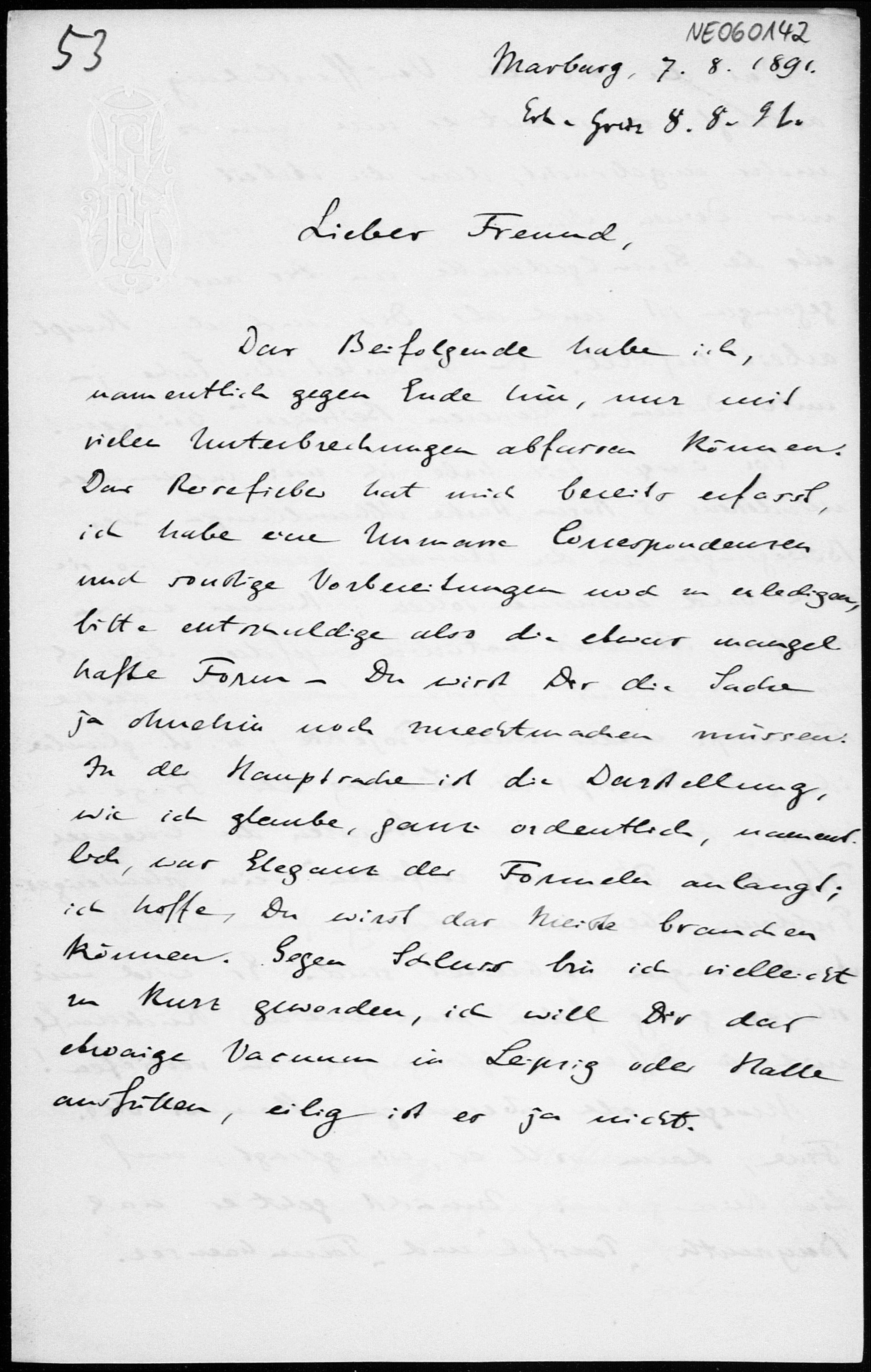 Brief von Eduard Study an Friedrich Engel vom 7.8.1891
