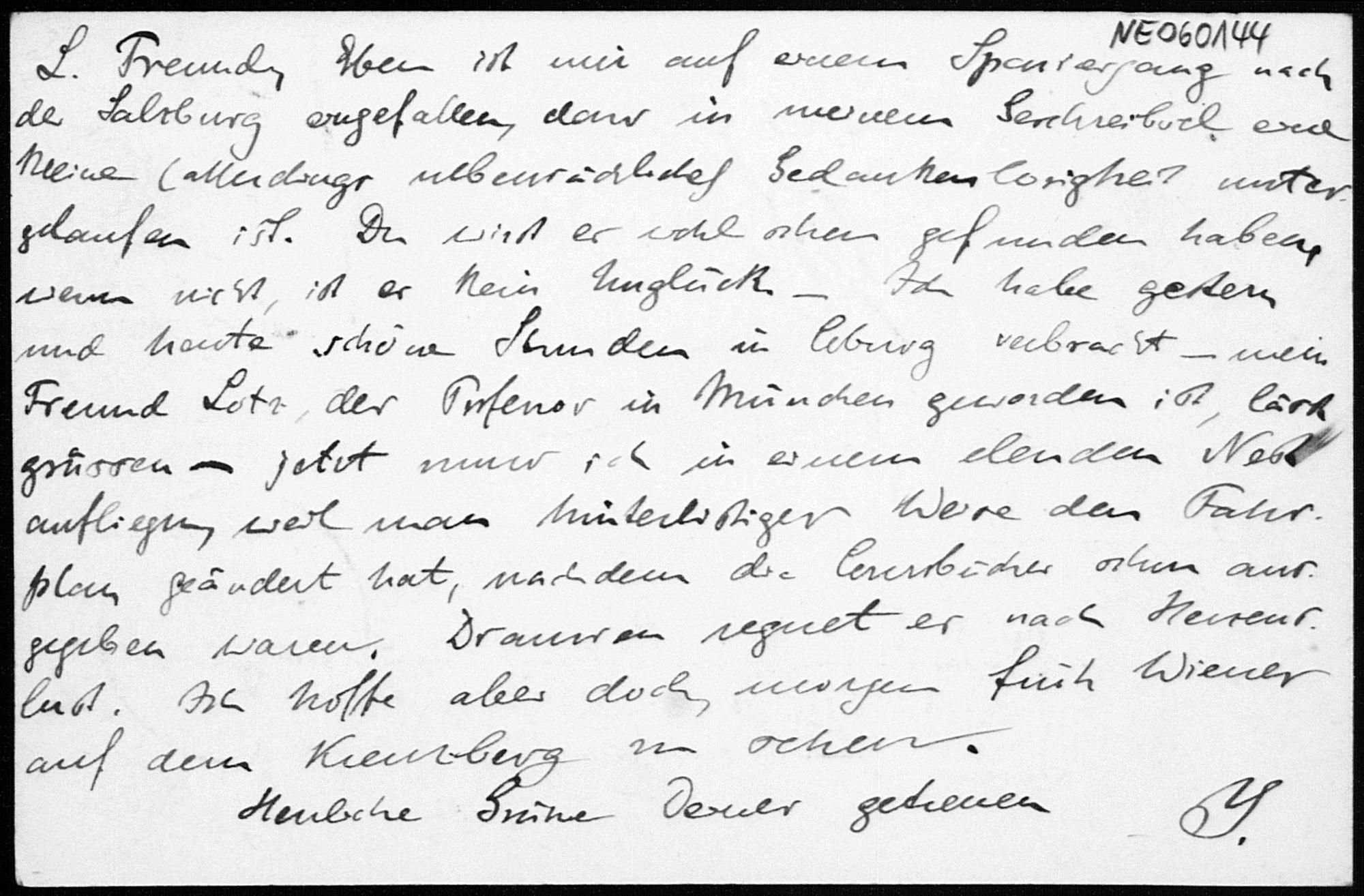 Postkarte von Eduard Study an Friedrich Engel vom 16.8.1891