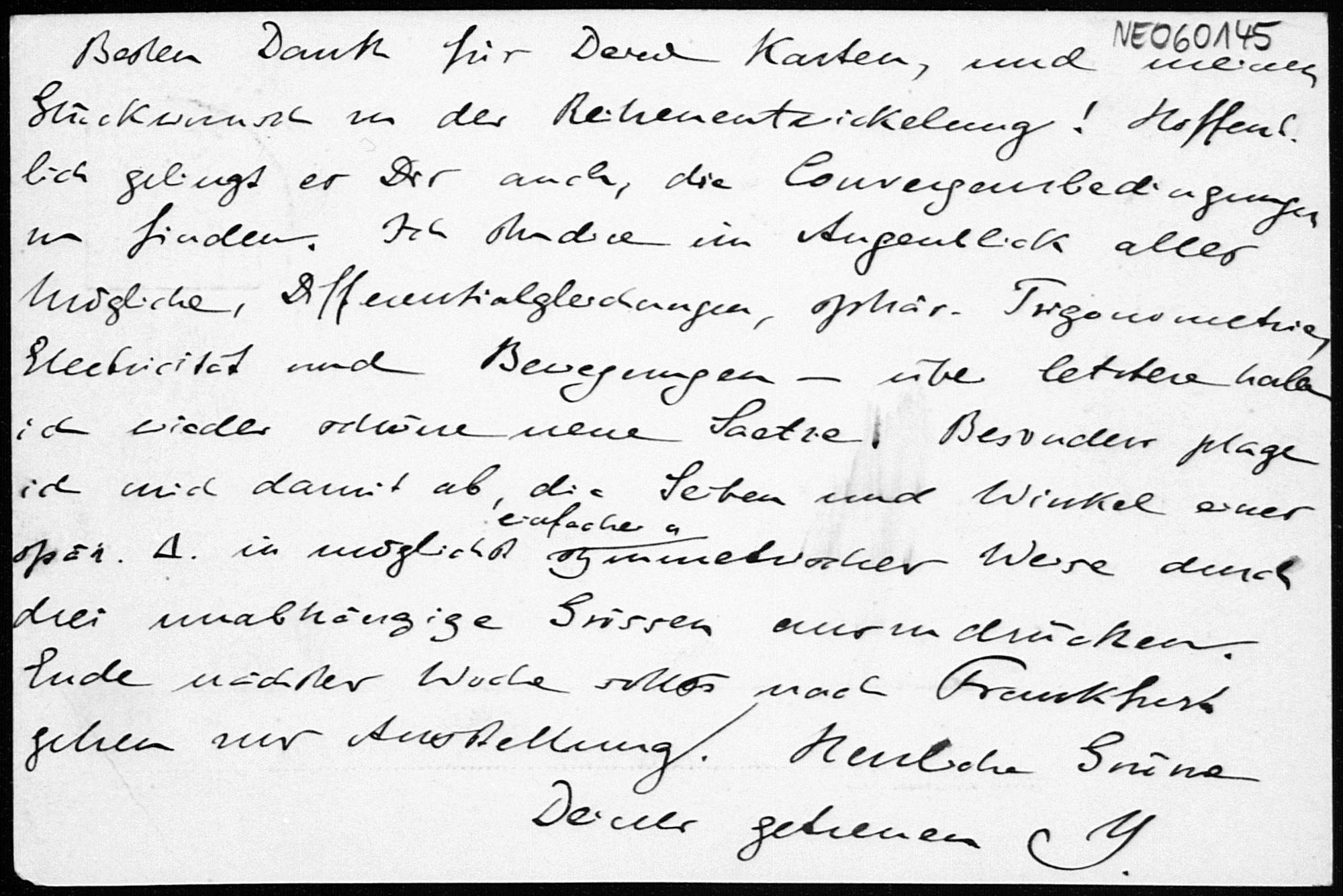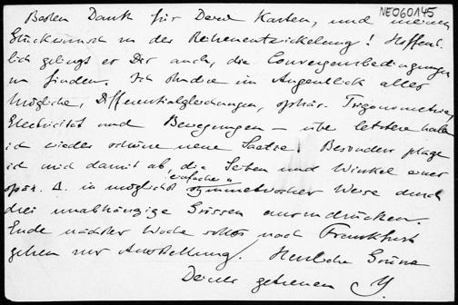 Postkarte von Eduard Study an Friedrich Engel von Ende August 1891