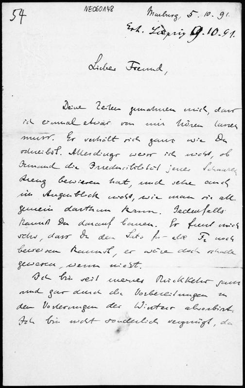 Brief von Eduard Study an Friedrich Engel vom 5.10.1891