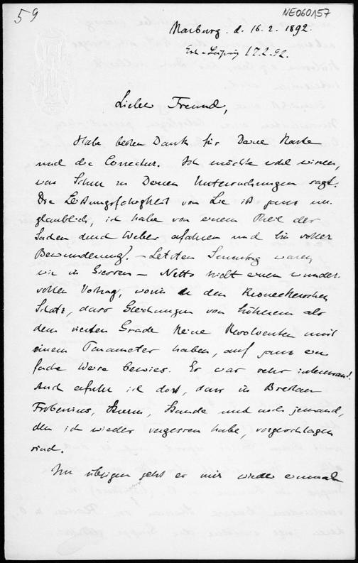 Brief von Eduard Study an Friedrich Engel vom 16.2.1892