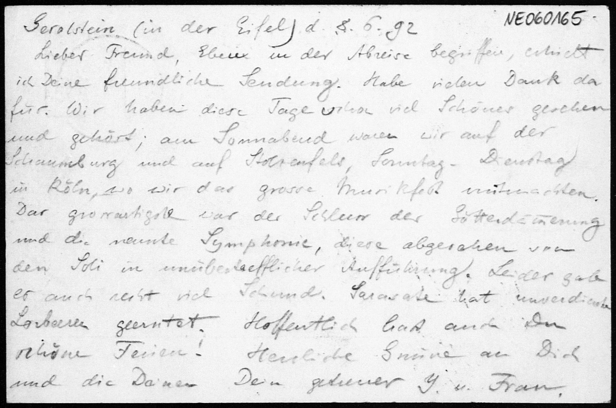 Postkarte von Eduard Study an Friedrich Engel vom 8.6.1892