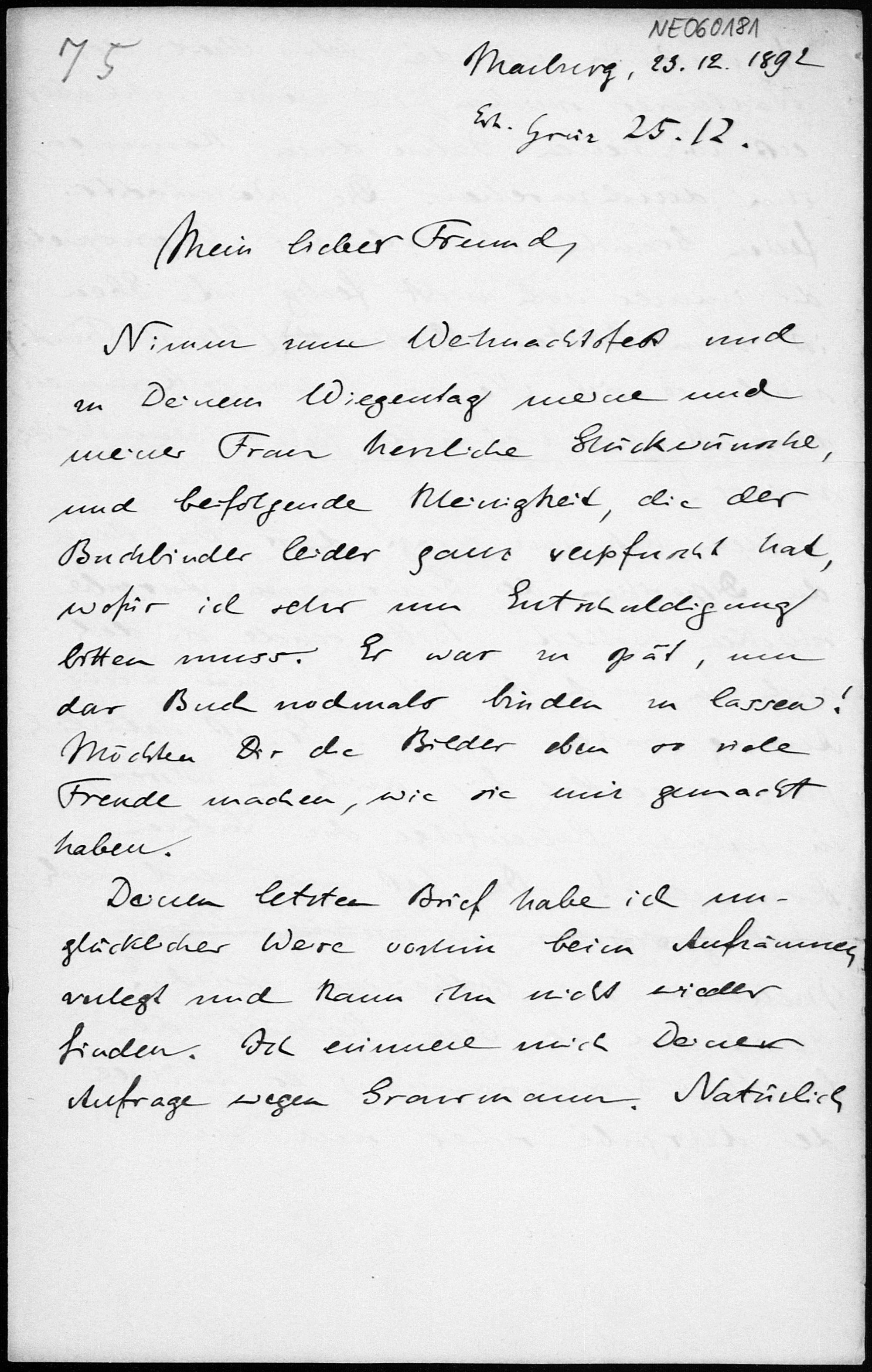 Brief von Eduard Study an Friedrich Engel vom 23.12.1892