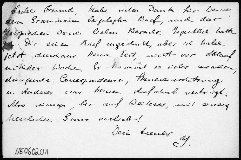 Postkarte von Eduard Study an Friedrich Engel vom 16.1.1893