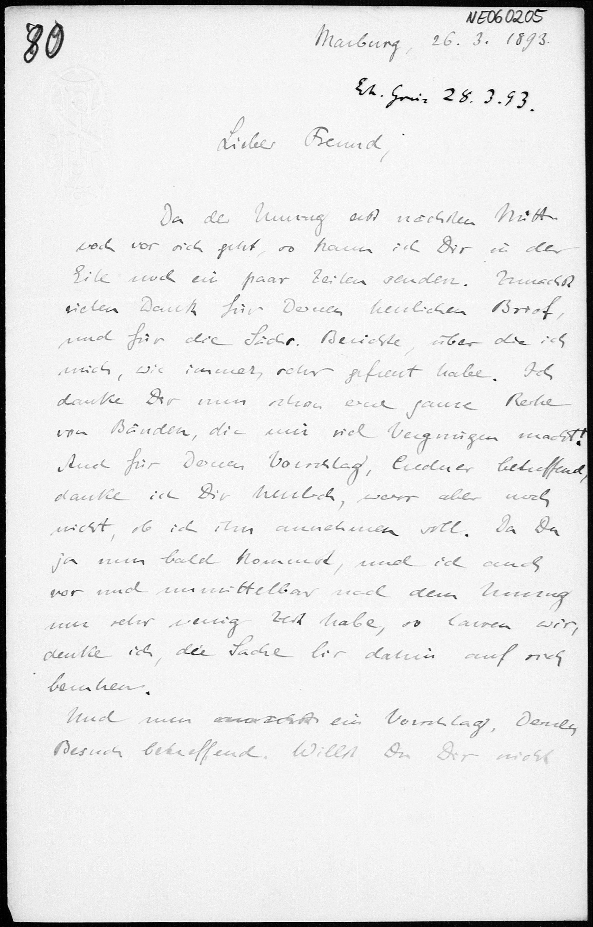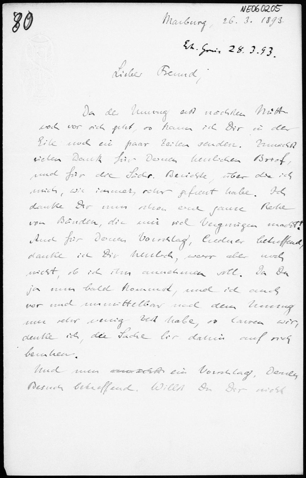 Brief von Eduard Study an Friedrich Engel vom 26.3.1893