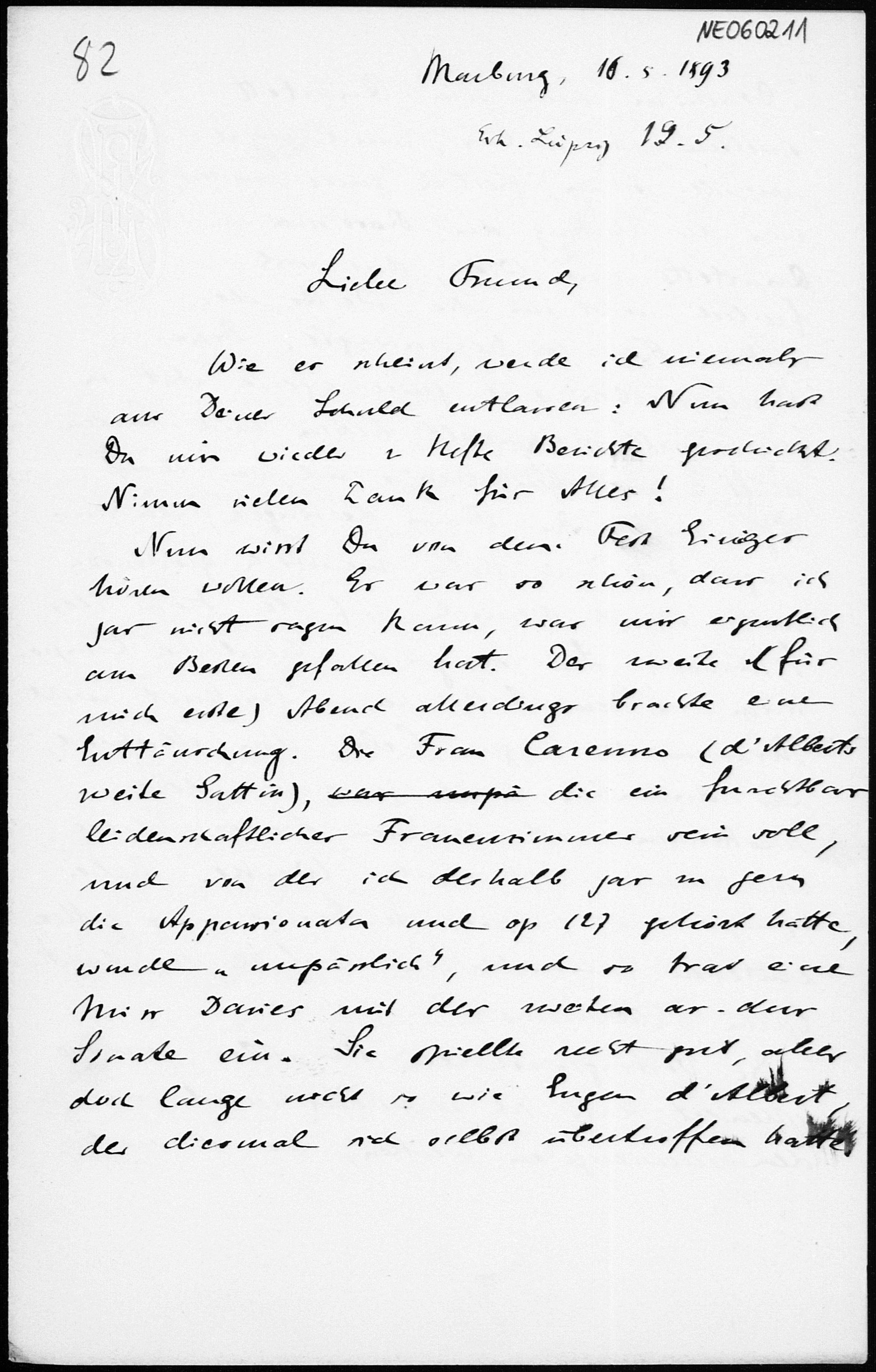 Brief von Eduard Study an Friedrich Engel vom 16.5.1893