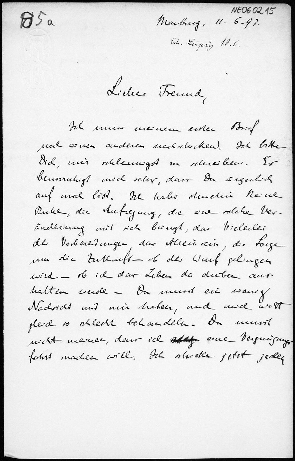 Brief von Eduard Study an Friedrich Engel vom 11.6.1893