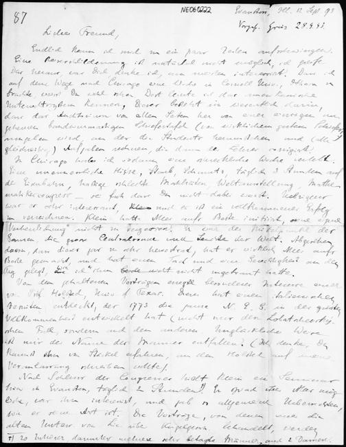 Brief von Eduard Study an Friedrich Engel vom 12.9.1893