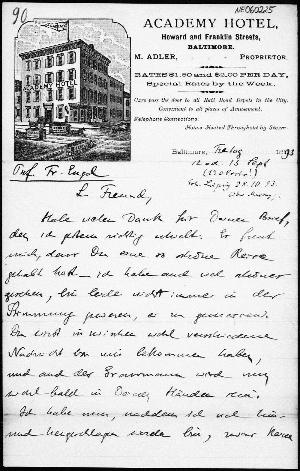 Brief von Eduard Study an Friedrich Engel vom 13.10.1893