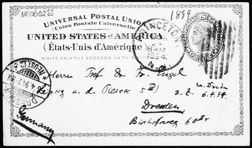 Postkarte von Eduard Study an Friedrich Engel vom 24.3.1894