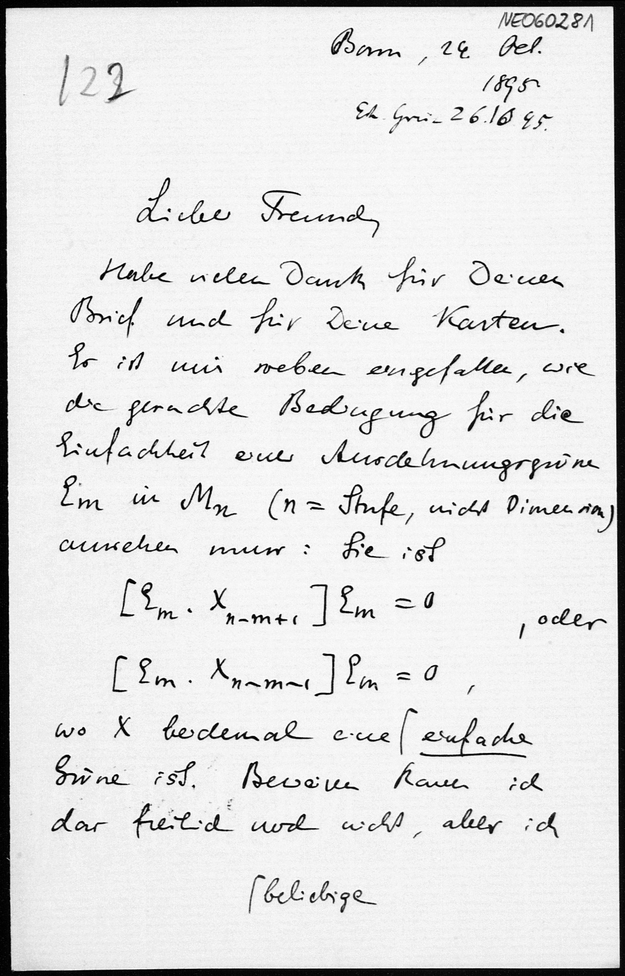 Brief von Eduard Study an Friedrich Engel vom 24.10.1895