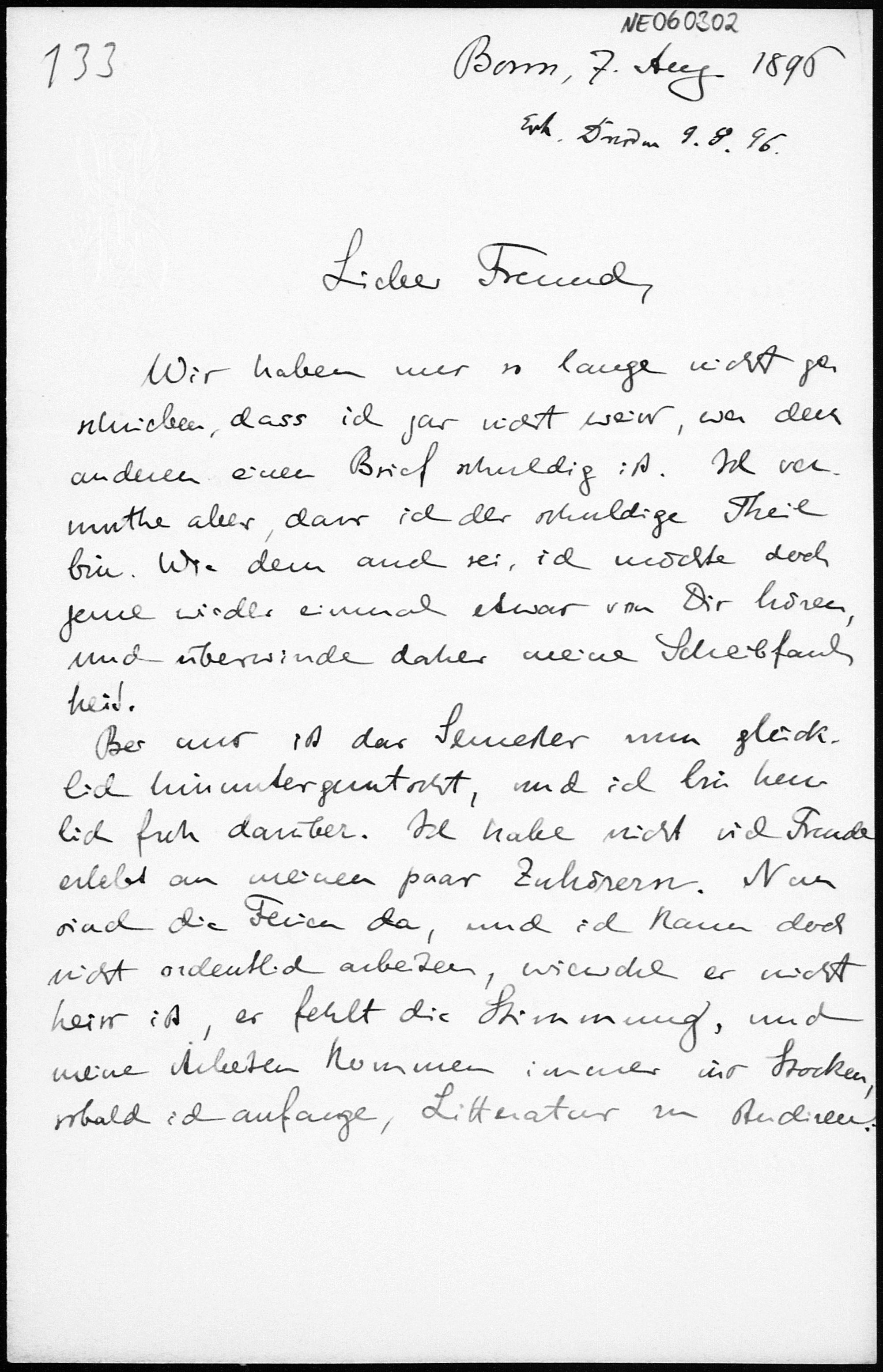 Brief von Eduard Study an Friedrich Engel vom 7.8.1896