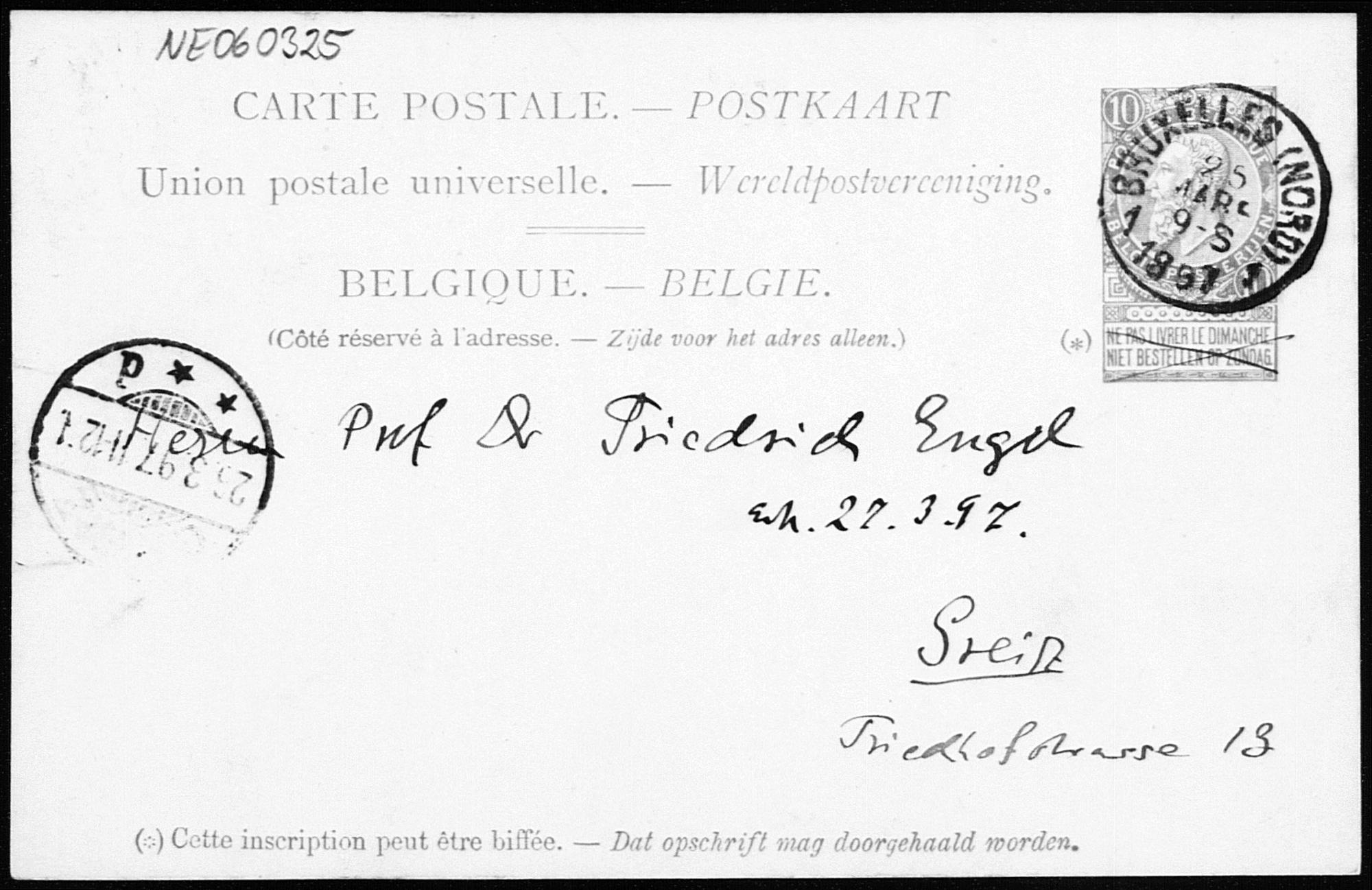 Postkarte von Eduard Study an Friedrich Engel vom 25.3.1897