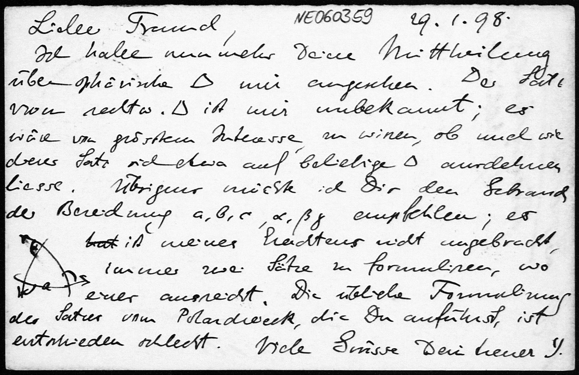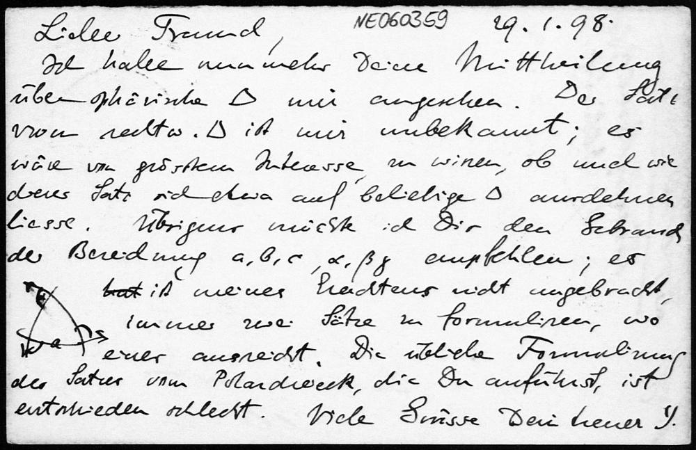 Postkarte von Eduard Study an Friedrich Engel vom 29.1.1898