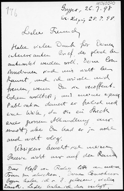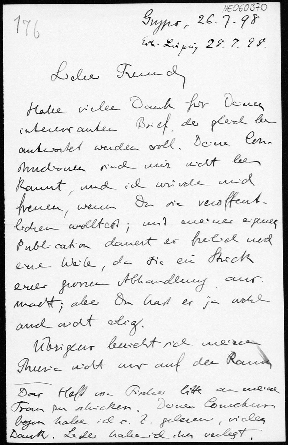 Brief von Eduard Study an Friedrich Engel vom 26.7.1898
