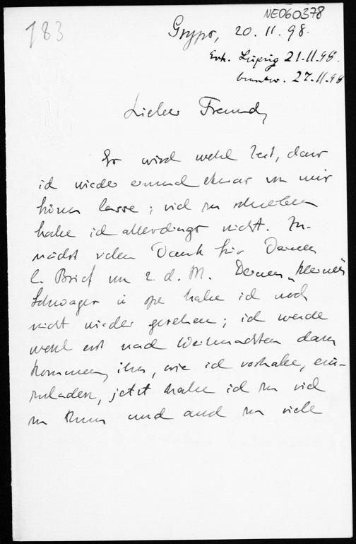 Brief von Eduard Study an Friedrich Engel vom 20.11.1898