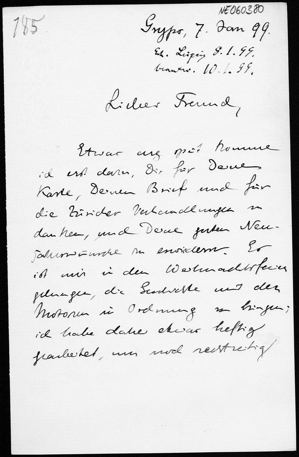 Brief von Eduard Study an Friedrich Engel vom 7.1.1899