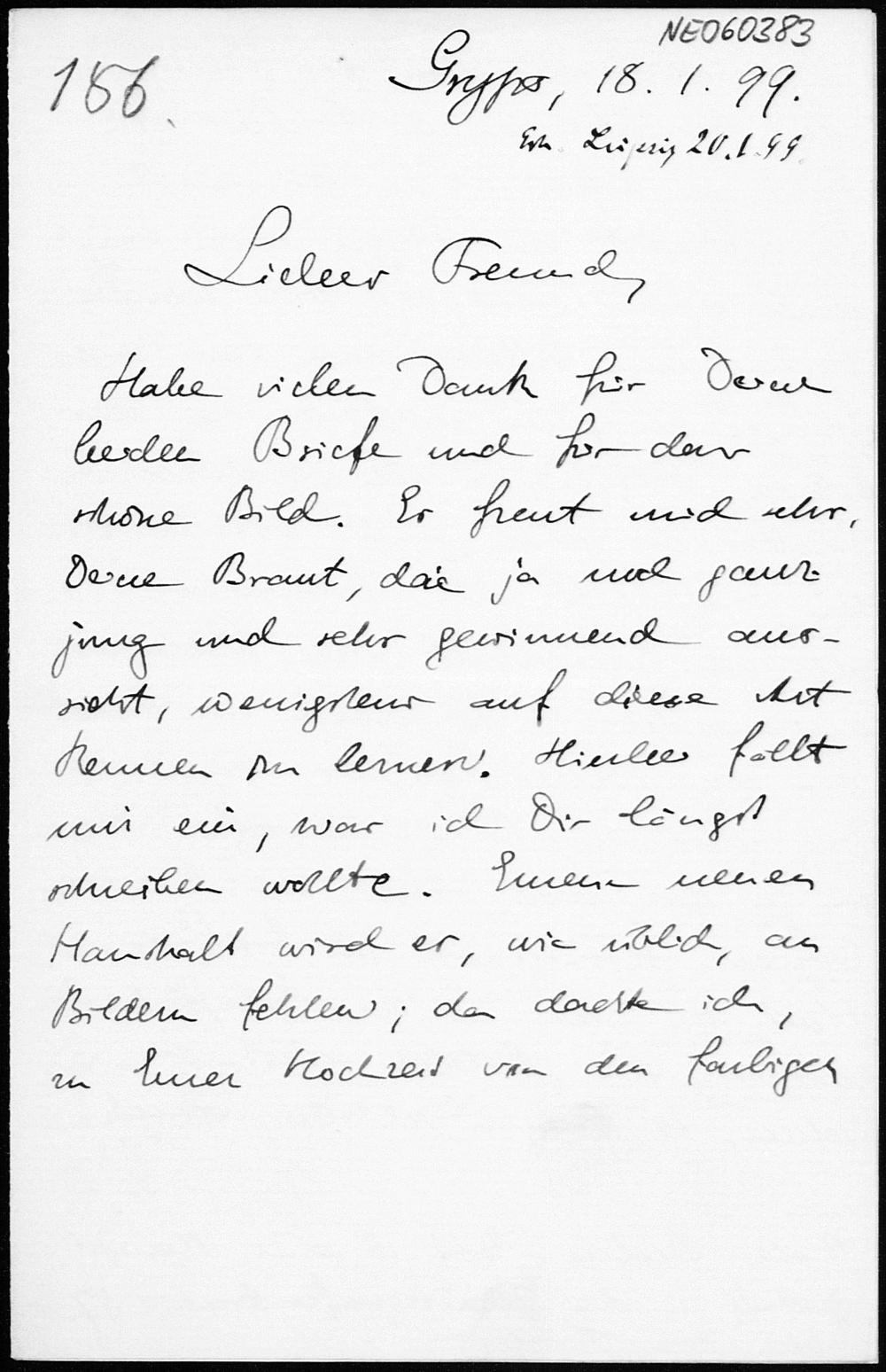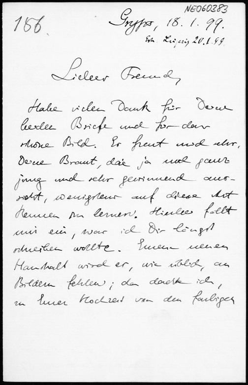 Brief von Eduard Study an Friedrich Engel vom 18.1.1899