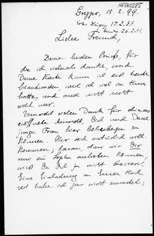 Brief von Eduard Study an Friedrich Engel vom 15.2.1899