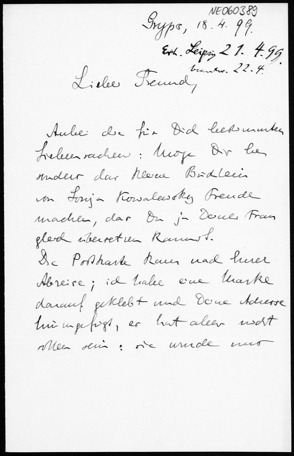 Brief von Eduard Study an Friedrich Engel vom 18.4.1899