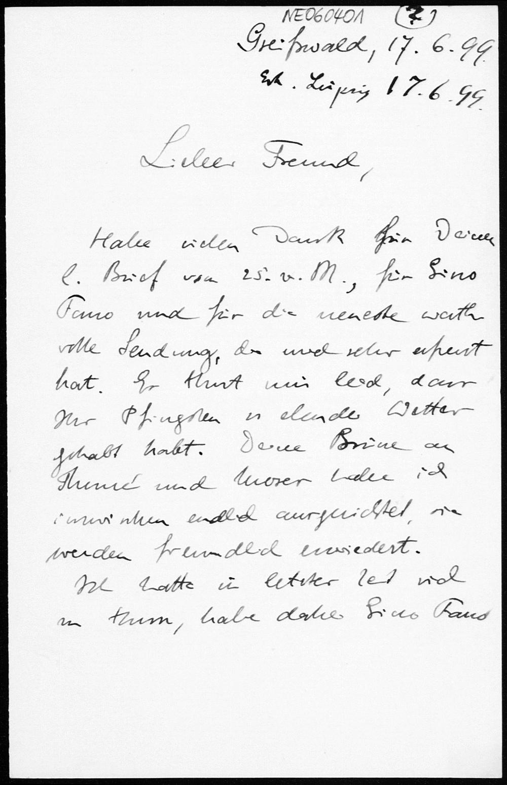 Brief von Eduard Study an Friedrich Engel vom 17(?).6.1899