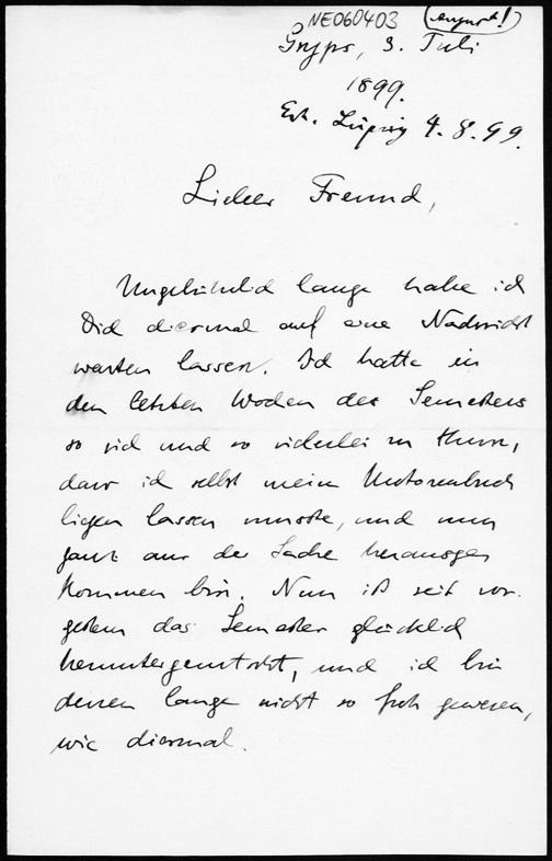 Brief von Eduard Study an Friedrich Engel vom 3.8.1899