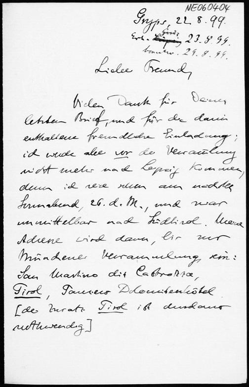 Brief von Eduard Study an Friedrich Engel vom 22.8.1899