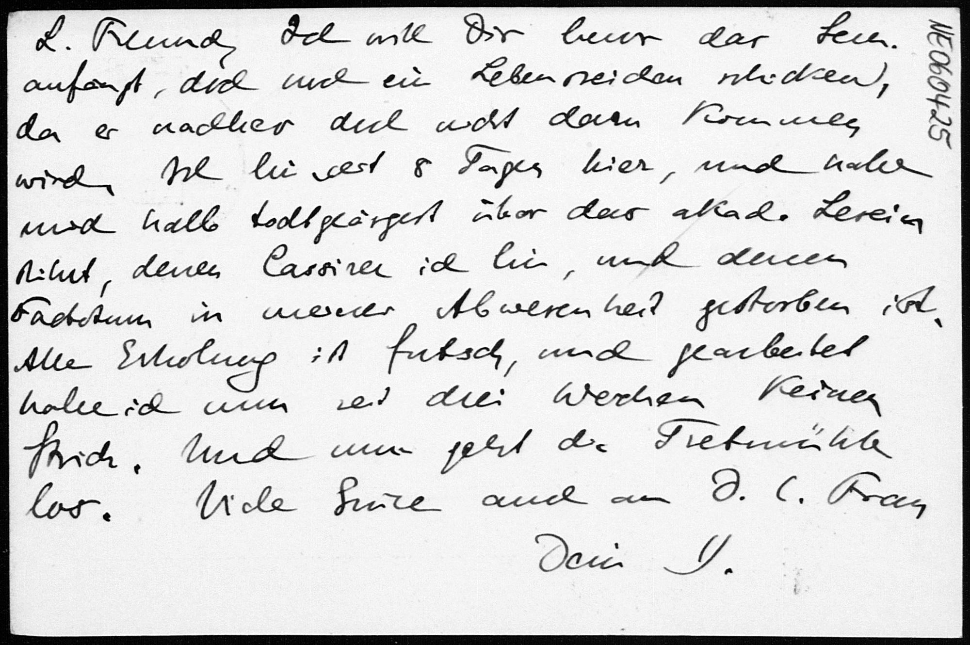Postkarte von Eduard Study an Friedrich Engel vom 27.4.1900