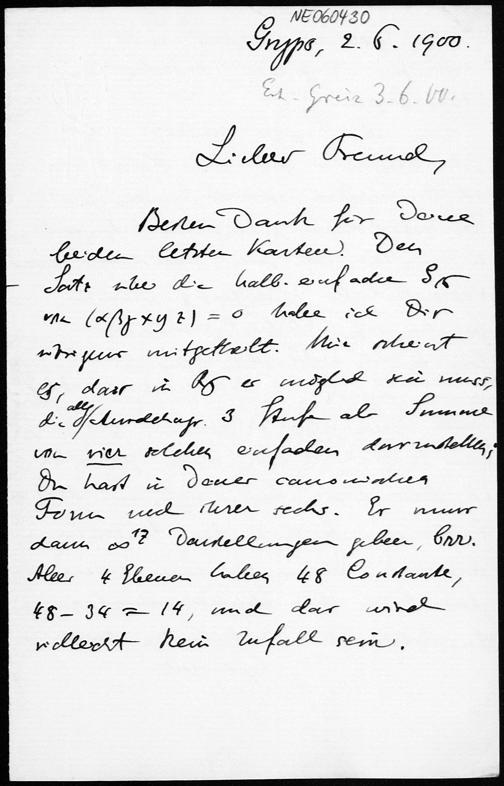 Brief von Eduard Study an Friedrich Engel vom 2.6.1900