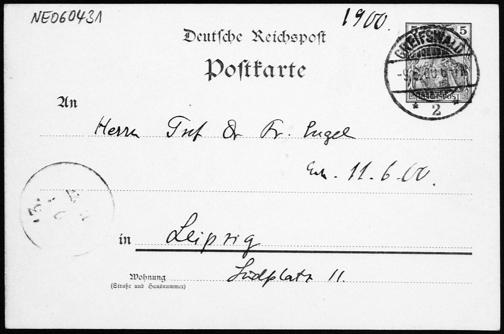 Postkarte von Eduard Study an Friedrich Engel vom 9.6.1900