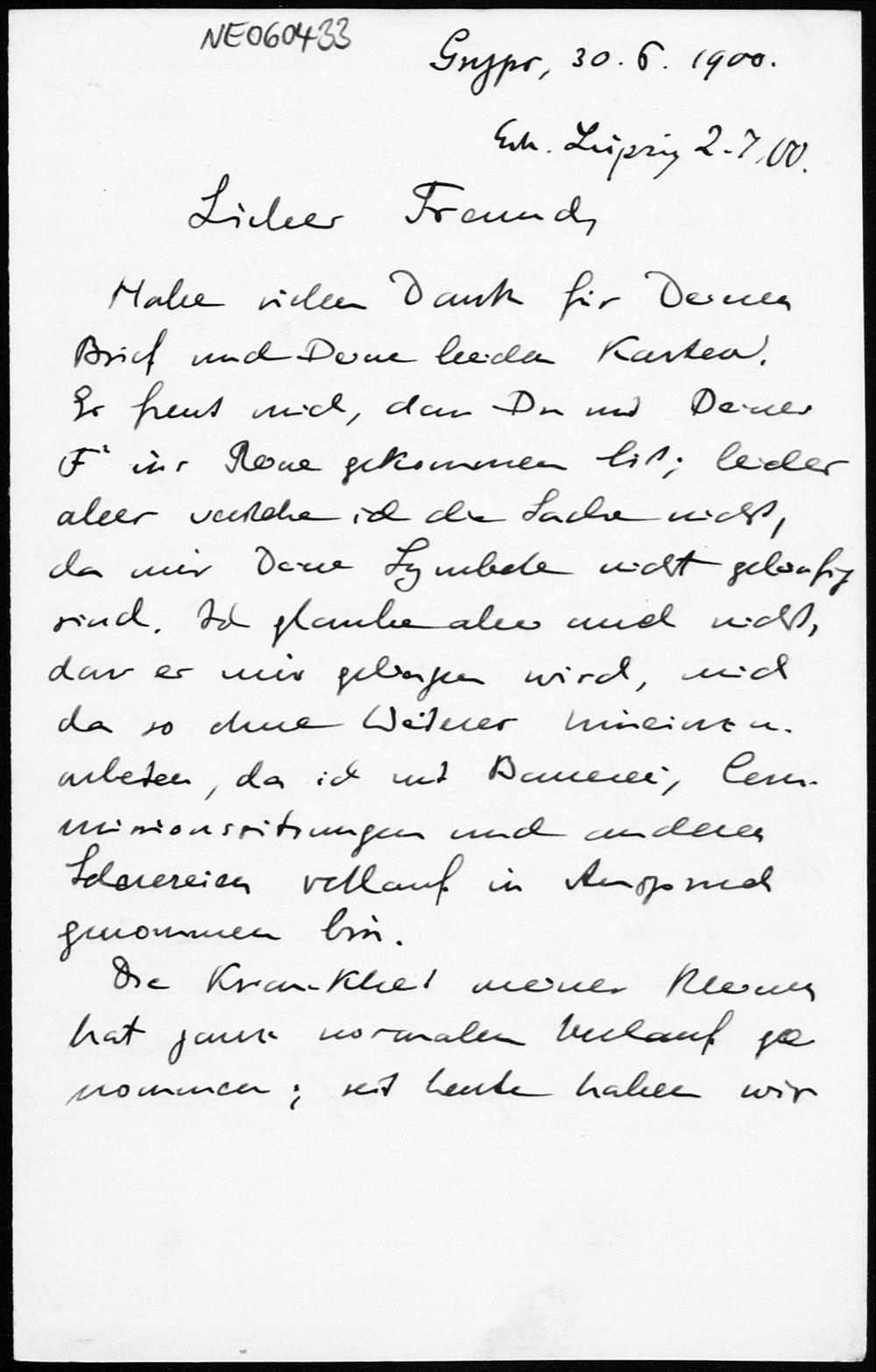 Brief von Eduard Study an Friedrich Engel vom 30.6.1900